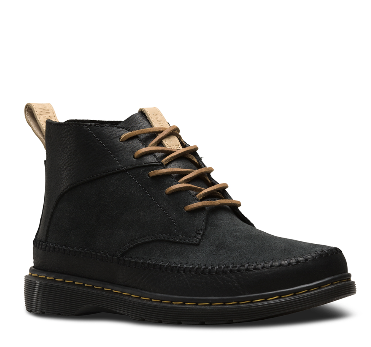 The casual boot Flloyd from Dr. Martens boasts premium detailing such as blind eyelets, a hand-stitched moccasin toe and a leather pull tab. Crafted from a mixture of the super soft Mesa leather and the Waxy Suede WP, and complete with yellow stitching and signature DM's branding.
