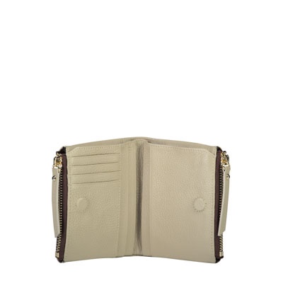 Details: Four card slots; five drop pockets; one note pocket; two zipped coin pouches; gold-plated hardware